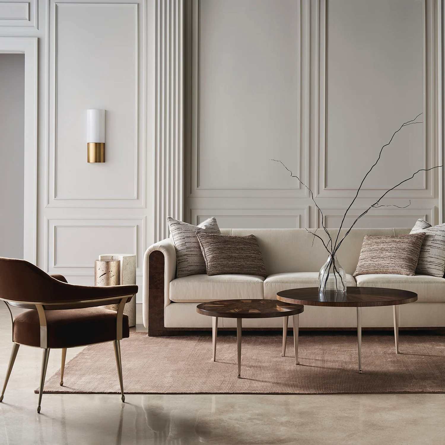 Raw yet refined with a hint of classic glamour, this sculptural spot table embodies the sun’s brilliance in constellation with the elegant curve of a crescent moon. Carved from unfilled travertine, the moon shape is left unfinished, while the smaller sun radiates warmth and a note of luxe in a Brazen bronze paint.