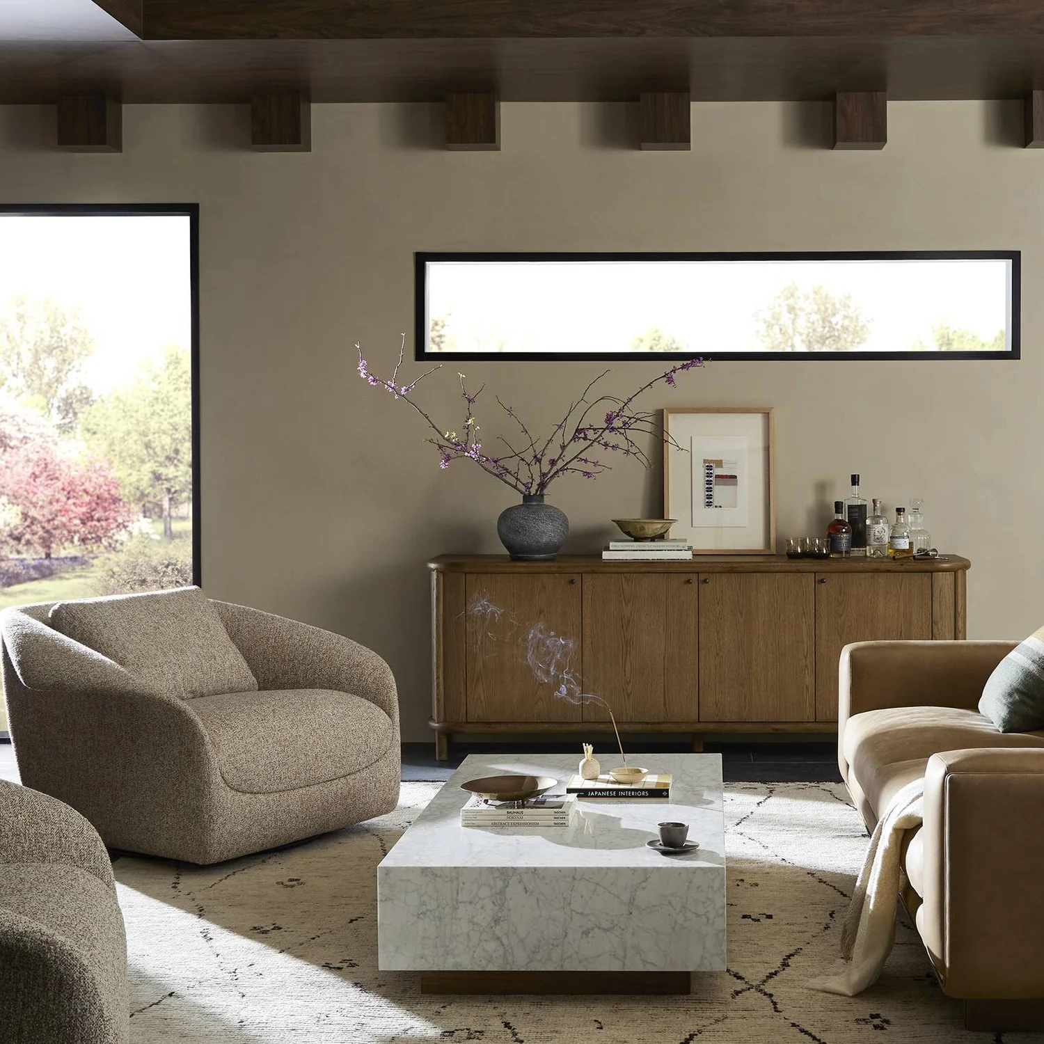 - Color: White Carrara Marble, Smoked Oak Veneer
