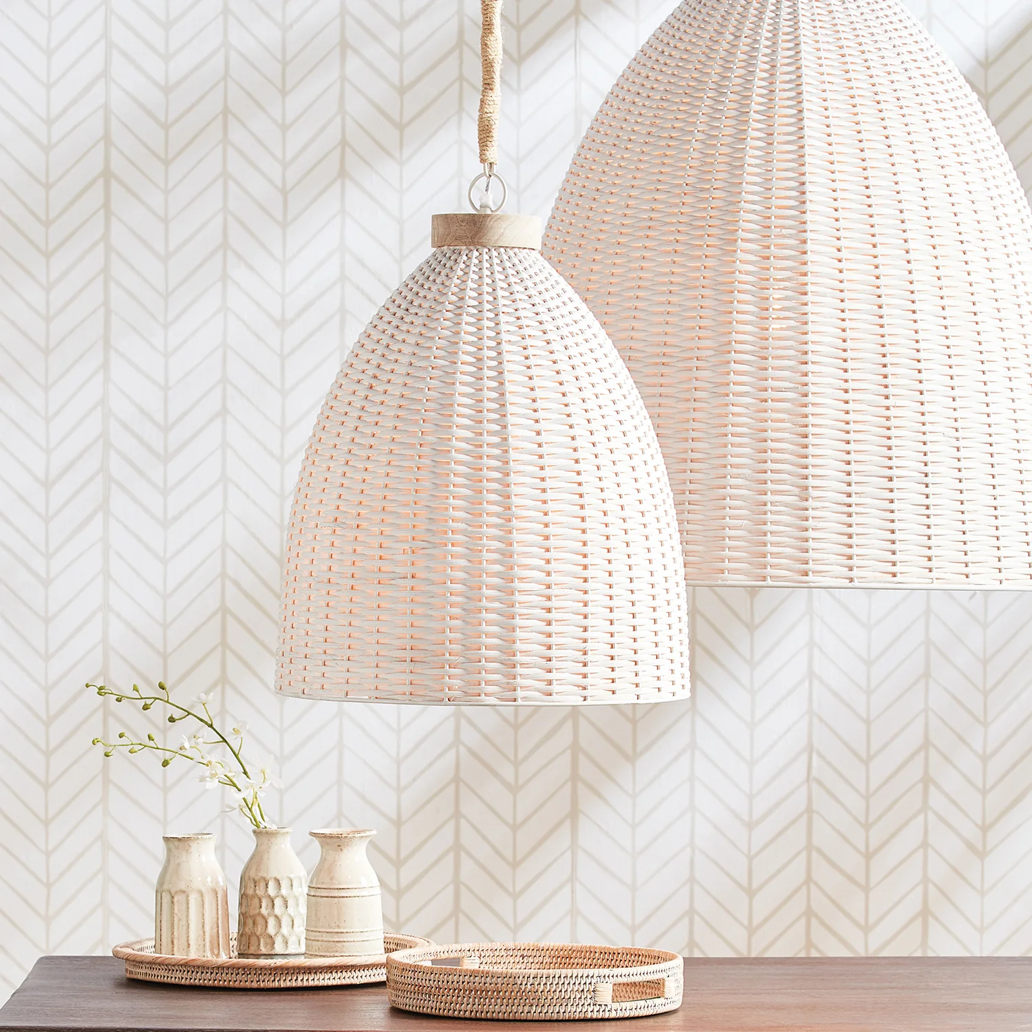 The Salinas Pendant brings the drama, in casual whitewashed style. Measuring over 20in tall, it is sure to be the focal point of the wide open farmhouse kitchen.