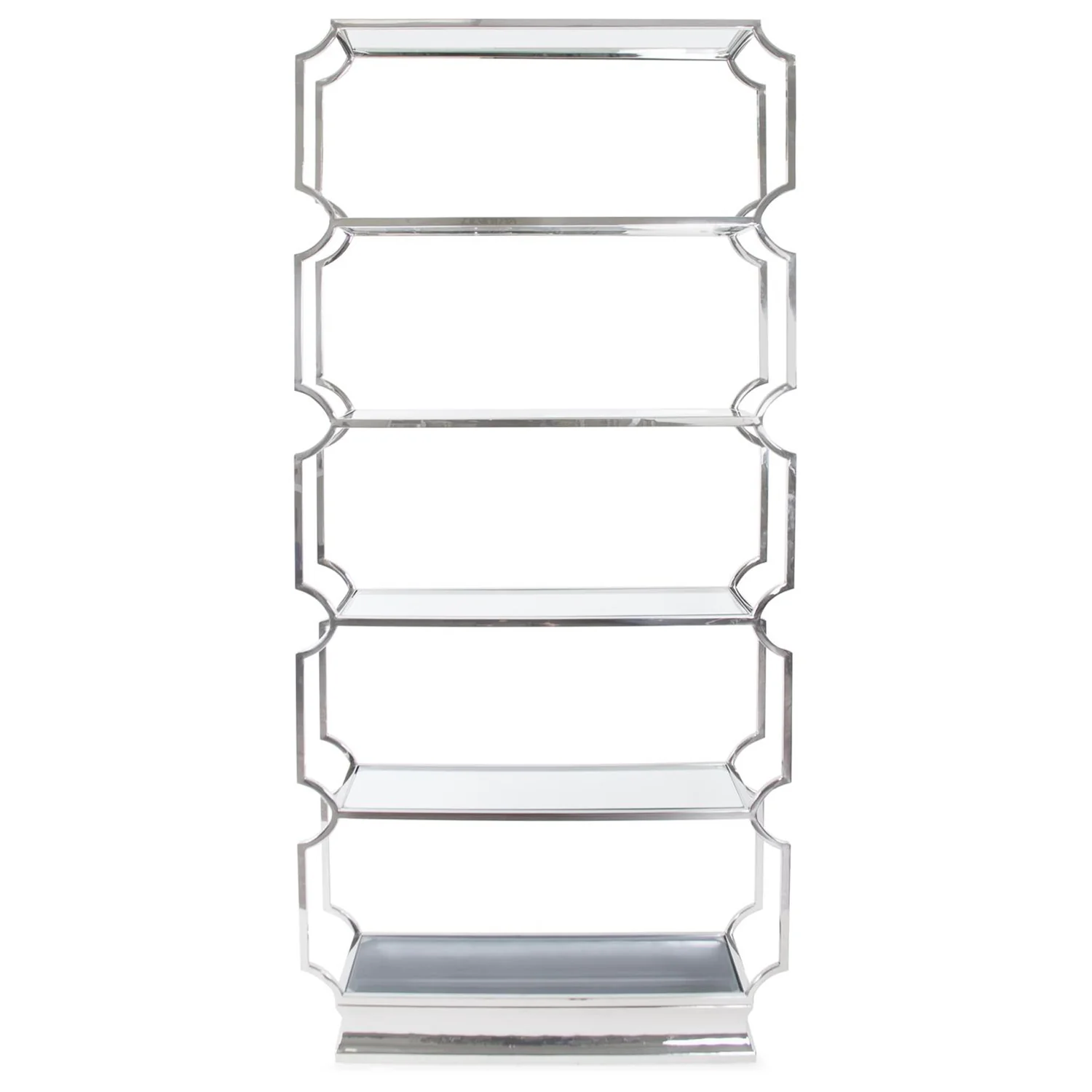 The scale and sleek lines of the Scola etagere sets an impressive statement piece in various positions within your home. Crafted by hand, this polished stainless steel frame is complimented with glass shelves that will be the perfect resting place for your favorite collections. Traditional but modern in a way that allows this etagere to be used in various interior settings.