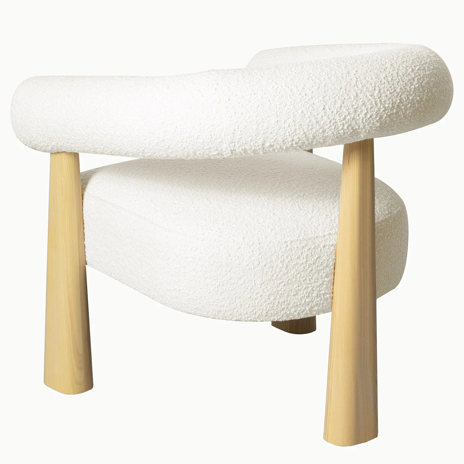 - Textured boucle upholstery complemented with natural finished wood legs