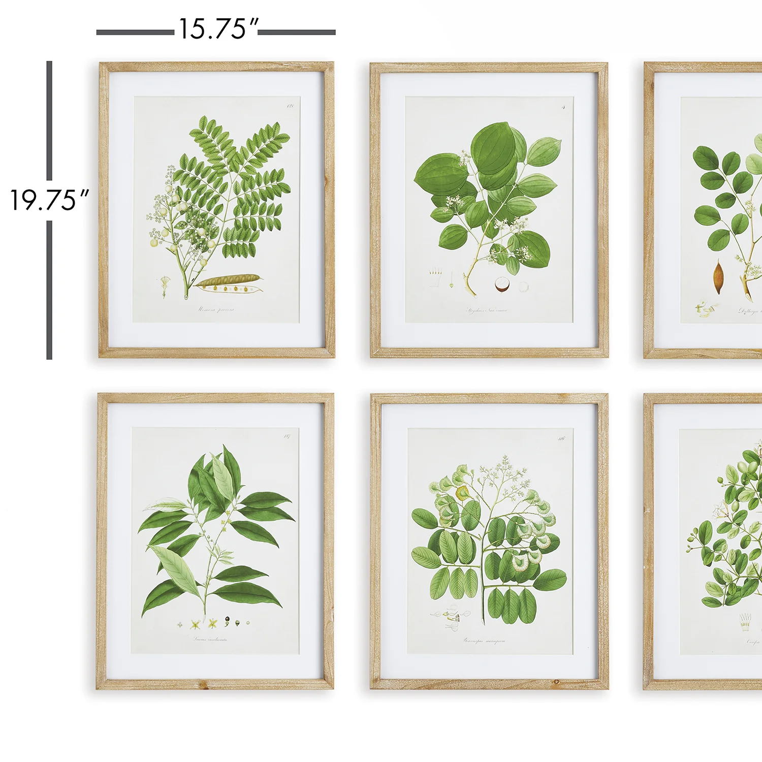 Each with their own signature characteristics, these tree leaf study prints are proof of diversity in nature. The natural wood distressed frames and beveled cardboard mats are a fitting choice for this traditional series.