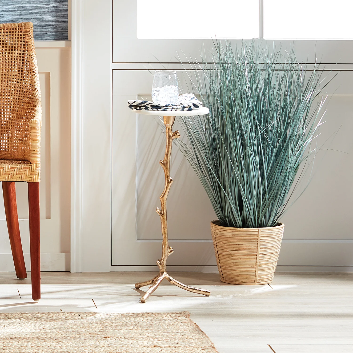 With a sturdy cast-aluminum base made to look like a meandering vine and a petite marble surface, this versatile accent table is made for modern living. Move it effortlessly within your space to stylishly hold a drink, dessert plate or even a lap top.