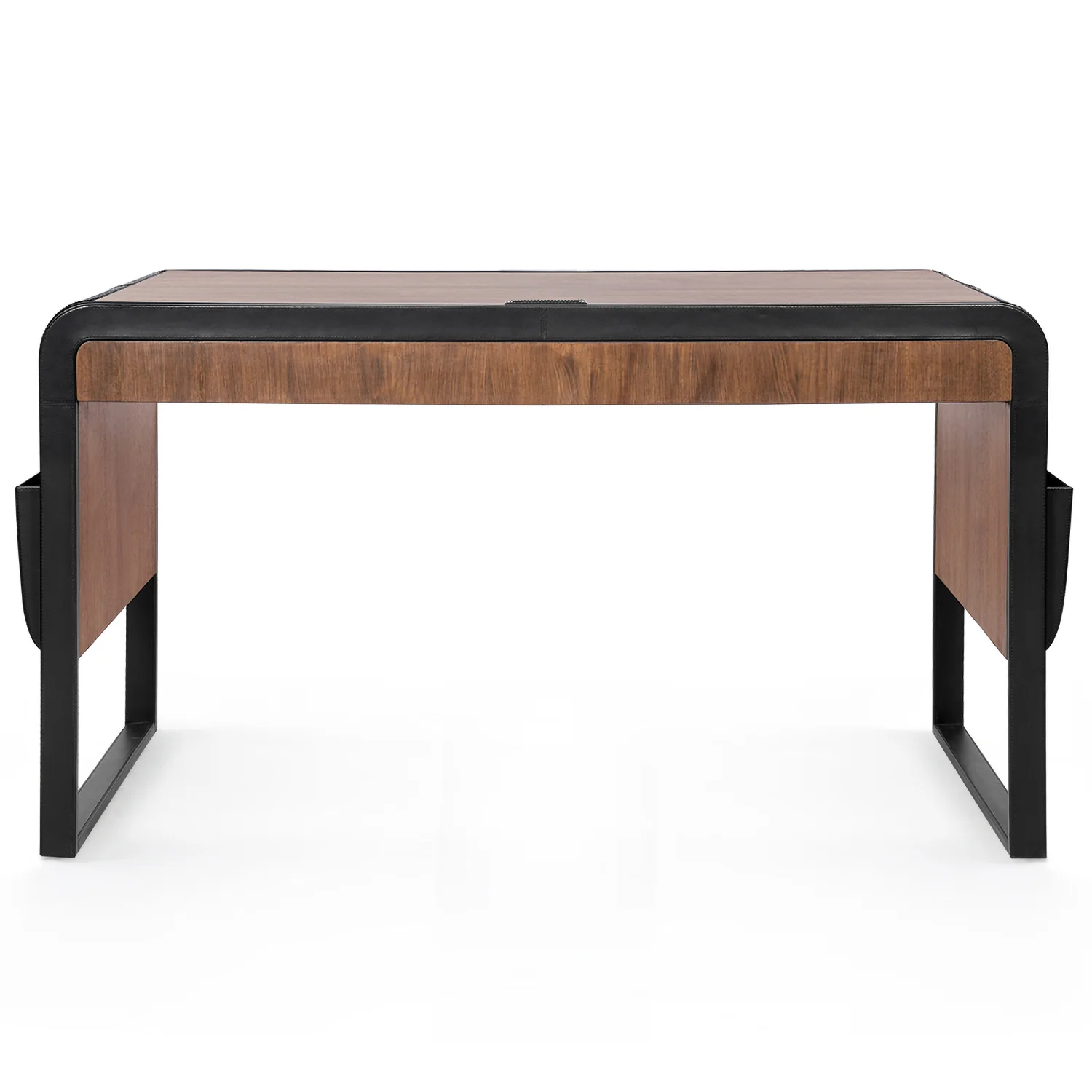- Material: Brass, Stitched Leather, Walnut Veneer