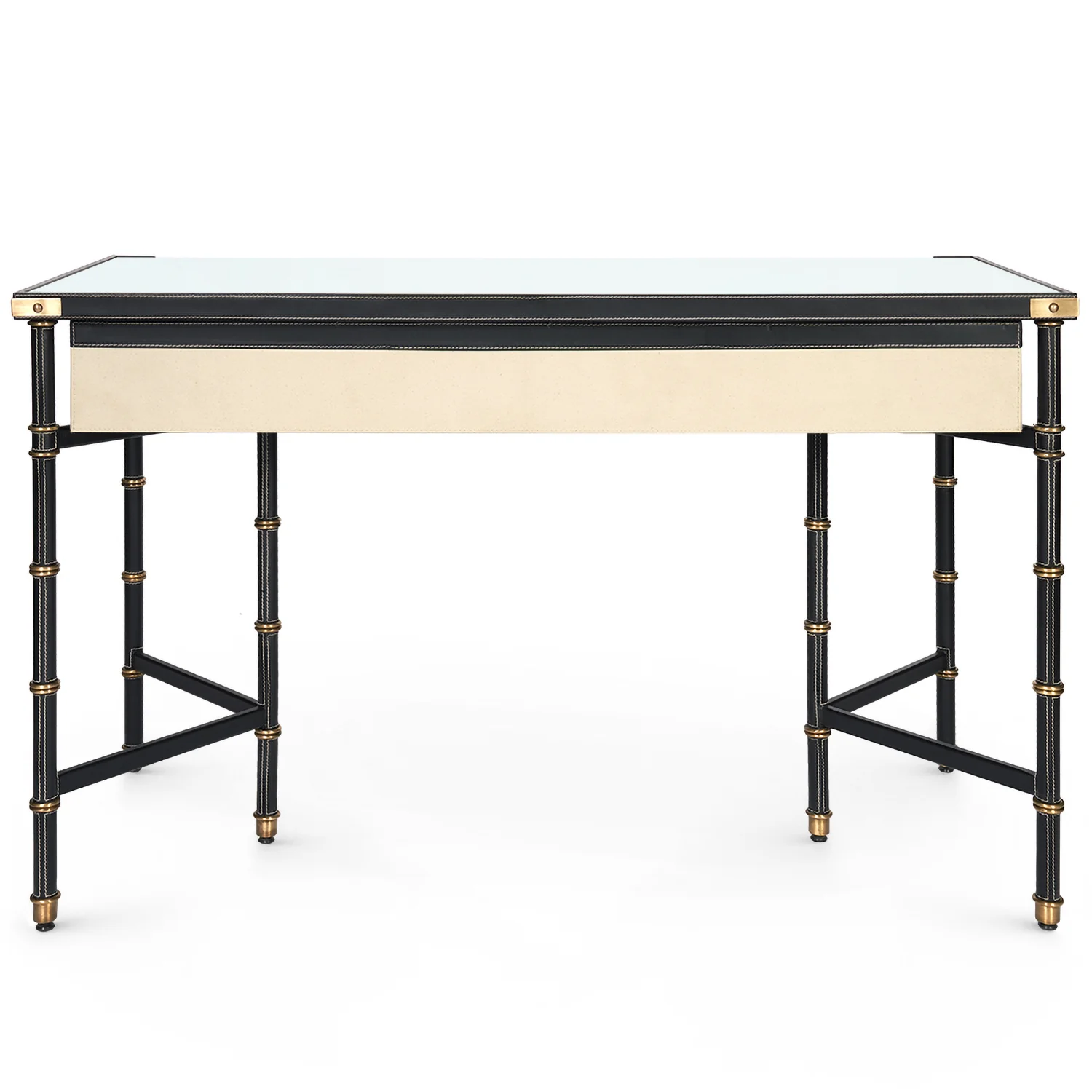 - Brass, Glass, Natural Canvas, Stitched Leather